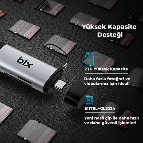 BN08 ve İçin 5 in 1 Alüminyum Type-C to USB 5GBPS 3.0 Çoklayıcı Hafıza Kartı Okuyucu OTG