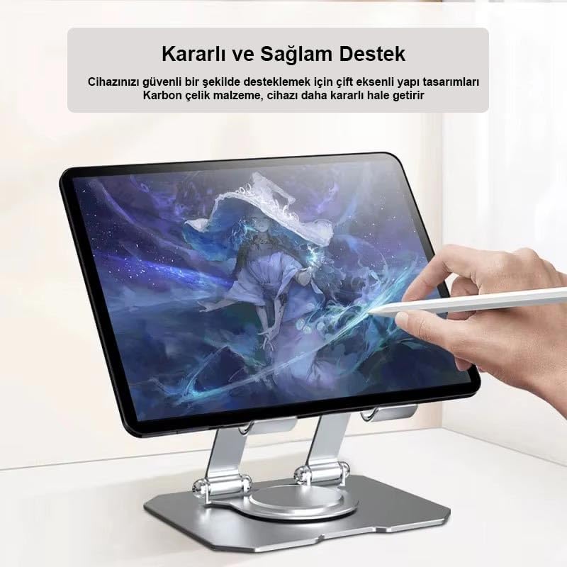 GA20 360 Ayarlı Metal Standlı Masa Üstü Metal Gövde Tablet Tutucu Telefon Standı Kaymaz Taban