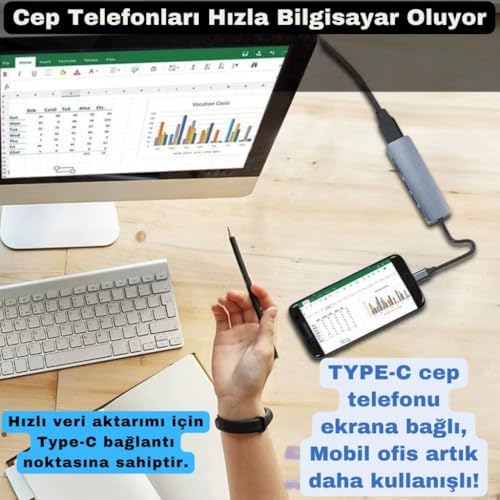Akım Korumalı 5in1 Type-c to USB Çevirici Çoğaltıcı USB3.0 USB2.0 2xPD Hub Type-c Çoğaltıcı