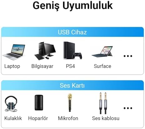 USB-A to 3.5mm Kulaklık Mikrofon Aux Dönüştürücü Harici Ses Kartı