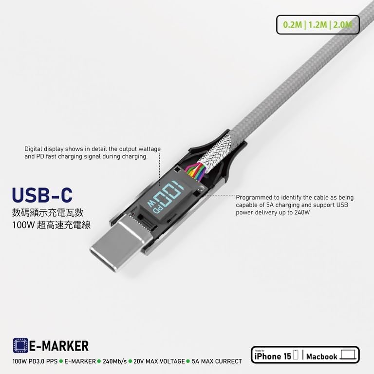 100W 5A Type C to Type C Hızlı Şarj ve Data Kablosu Halat Örgülü Space Gray MBT (2 Metre)