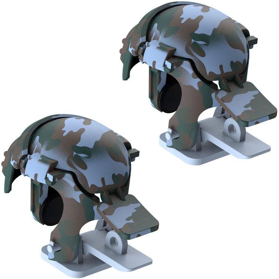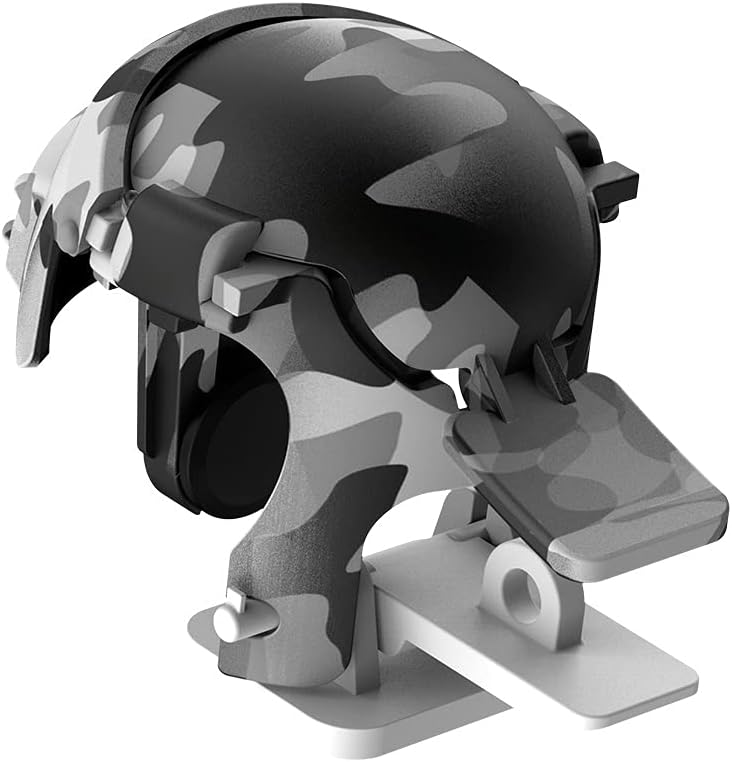 Mobil Oyun Kontrol Aparatı, Kamuflaj Desenli Koyu Yeşil – Beyaz, PUBG Mobile Kaskı Şeklinde, Mobile GamePad, Ateş/Tetik/Kontrol/4 Parmak Kullanımını Sağlayan, Cep Telefonu/Tablet Uyumlu Aparat