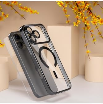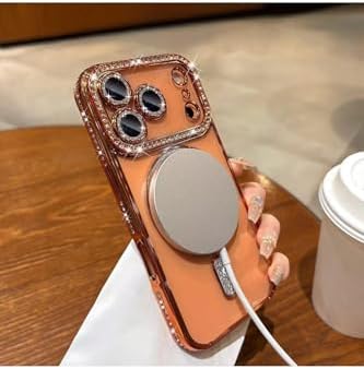 – 17 Pro Max ile uyumlu Kılıf Tam Kamera Korumalı ile Uyumlu Turuncu Kenarlı Arkası Şeffaf Kapak