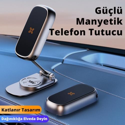 Ultra Güçlü Mıknatıslı 360 Döner Alüminyum Araç İçi Telefon Tutucu Masaüstü Telefon Tutucu