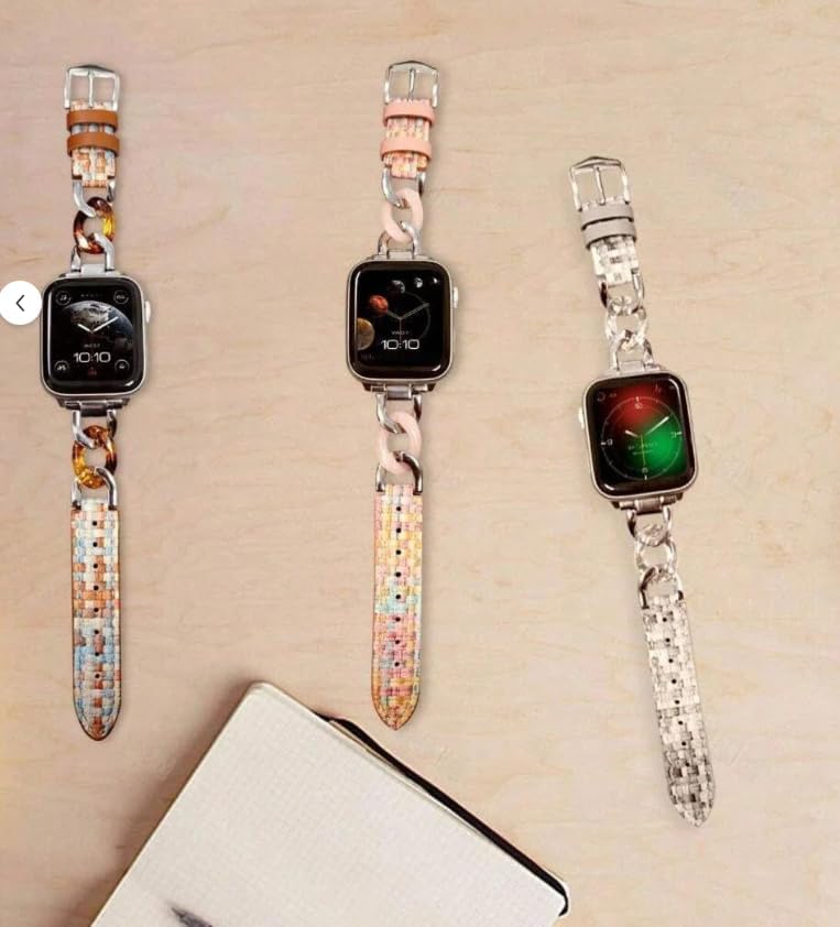 38/40/41/42 mm Uyumlu Deri Bileklik Kayışı, Renkli Örgülü Desen, Metal Zincir Tasarım