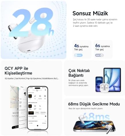 QCY T31 Melobuds Neo ENC 4 Mikrofon Dijital Güç Göstergesi Bluetooth 5.3 Kablosuz Kulaklık Beyaz