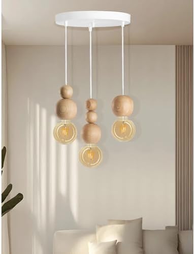 Ahşap Detaylı Modern Rustik Sarkıt Avize Şık Ve Doğal Tasarım Salon Oturma Odası (Beyaz-Ahşap)