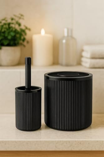 Serisi Siyah Banyo Seti, 2 Parça Akrilik Silindir 5 Litre Çöp Kovası Ve Tuvalet Fırçası Takımı Siyah