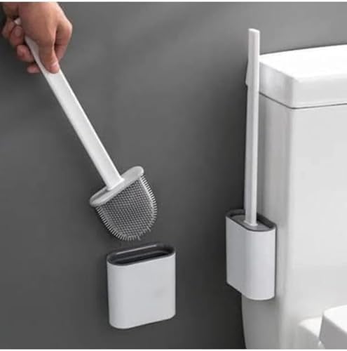 Duvara Yapıştırılabilir Silikon Wc Fırçası,İnce Aralara Girebilir Silikon Klozet Fırçası (Beyaz)