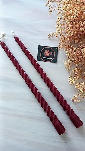 (2 Adet 27.5Cm) Mum Konik Şamdan Mumu Dekoratif Akmaz Kırılmaz Mum Bal Mumu Beeswax Candle (Bordo)