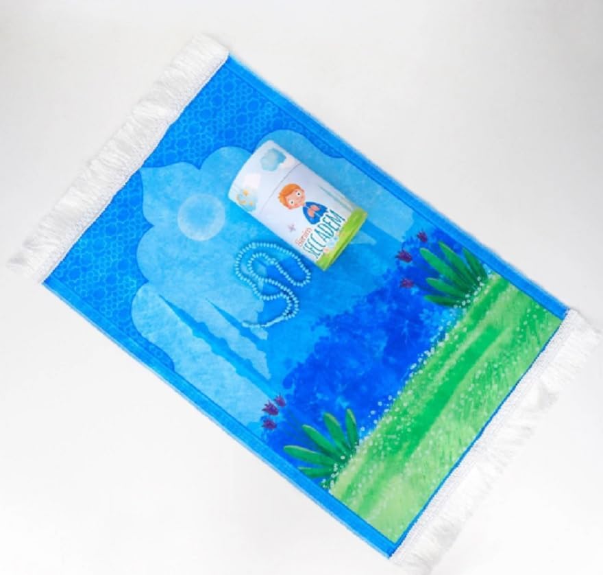 3 Parça Namaza Ilk Adım Çocuk Hediyelik Silindir Kumbara Kutulu Seccade Seti