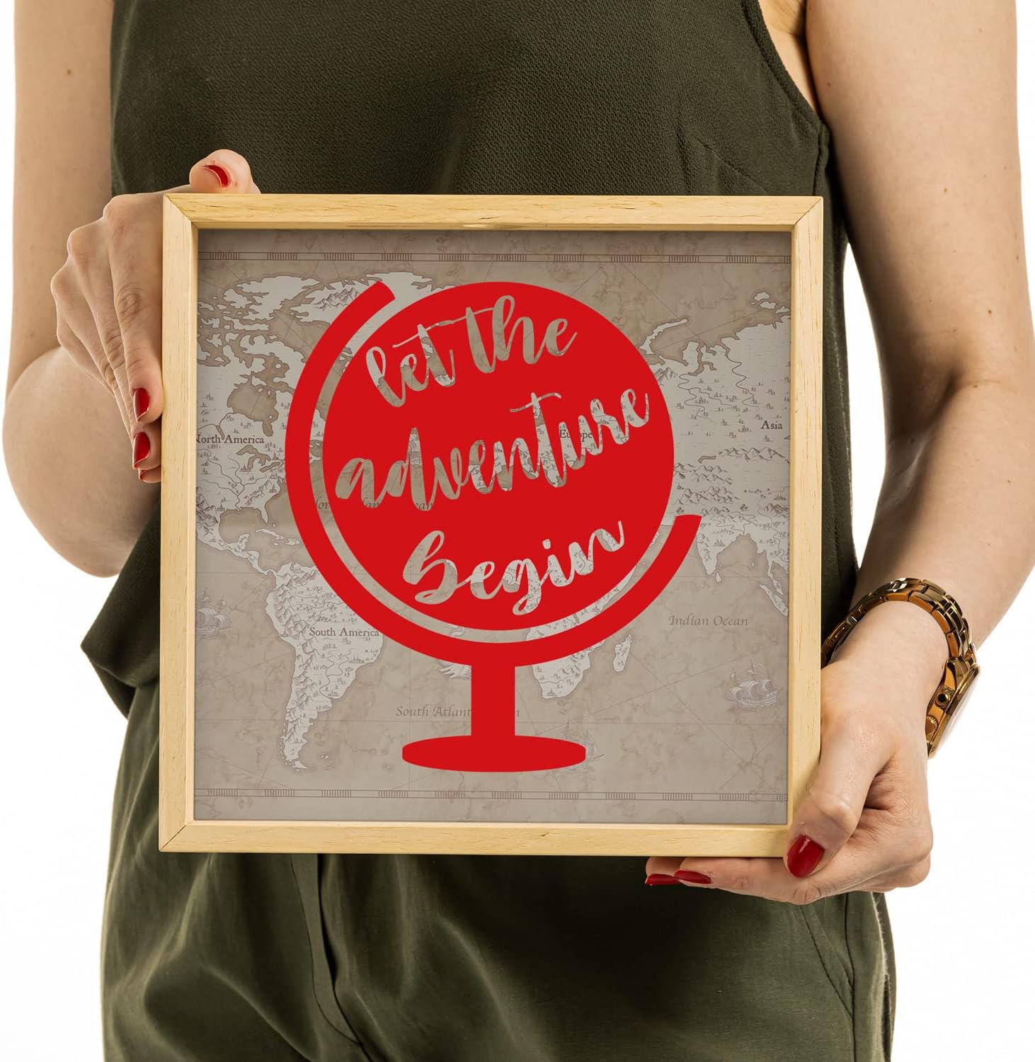 Let the Adventure Begin Tasarımlı Ahşap Kumbara