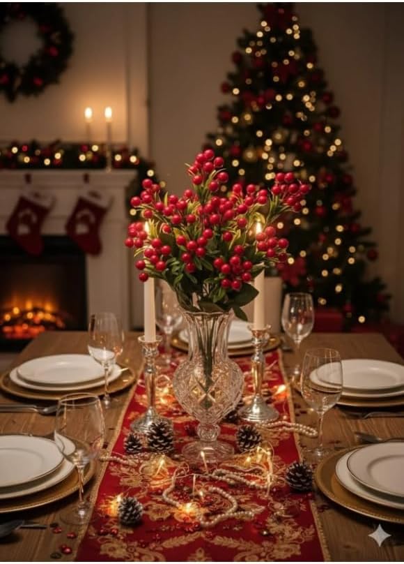 Yapay Çiçek Kırmızı Kokina Demetİ Kokina Çiçeği Yılbaşı Süsü Yılbaşı Ağacı Süsü Kırmızı Yeşil