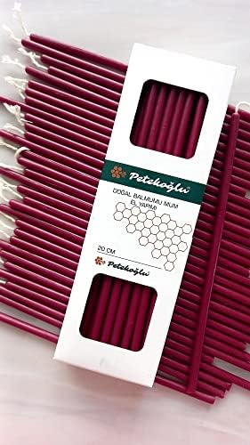 (40 Adet Bordo) Mum Dilek Mumu Doğal Petek Ince Uzun Parti Rituel Doğum Günü Mumu Beeswax Candle