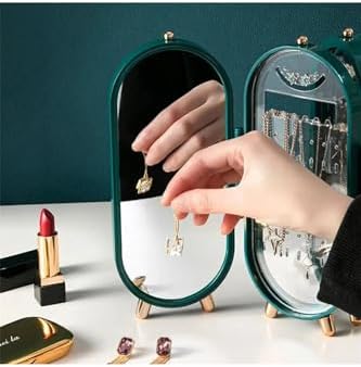 4 Bölmeli Takı Organizeri Aynalı Takı Askısı Yüzük Standı, Küpe Standı, Kolye Düzenleyici YEŞİL