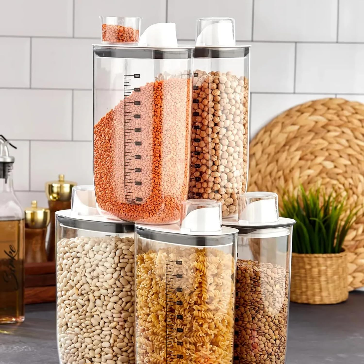 6'lı Vakumlu Hava Geçirmez Ölçekli Beyaz Saklama Kabı Seti – 2000 ml Ölçü Kapaklı Bakliyat Kabı Seti