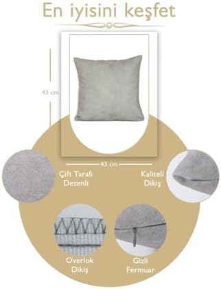 43X43 Cm Açık Gri Kırlent Kılıfı Dekoratif Kadifemsi Etnik Inta-701