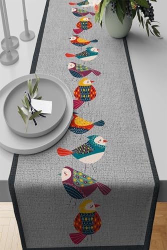 40X140Cm Klasik Çerçeveli Tay Tüyü Dokuma Premium Leke Tutmaz Kumaş Masa Örtüsü Runner Rnr321