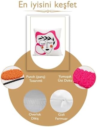 45X45 Özel Tasarım Panç Süzene Desen Dekoratif Kırlent Kılıfı Modern Beyaz 11