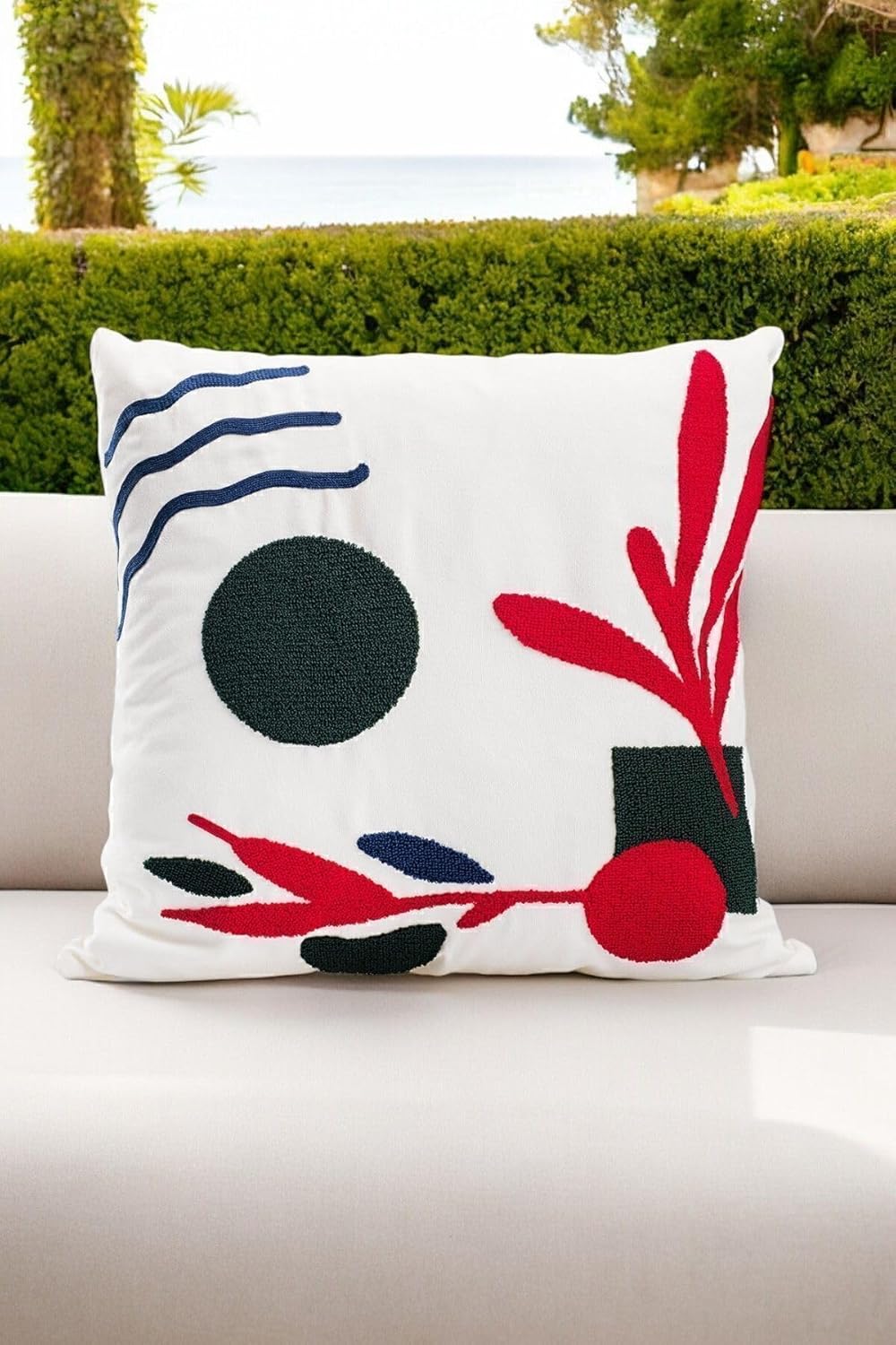 45X45 Özel Tasarım Panç Süzene Desen Dekoratif Kırlent Kılıfı Modern Beyaz 10