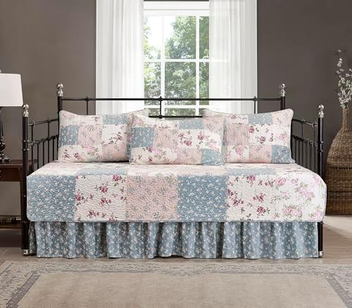 Abbi 5 Parça Bahçe Çiçekli Yıkanmış%100 Pamuk Ters Çevrilebilir Yama İşi Yorgan Seti (Daybed Boyutu)