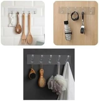 Group – Kendinden Yapışkanlı, Güçlü, Şeffaf 5'li Askılık – Kapı Arkası, Mutfak, Duvar, Banyo