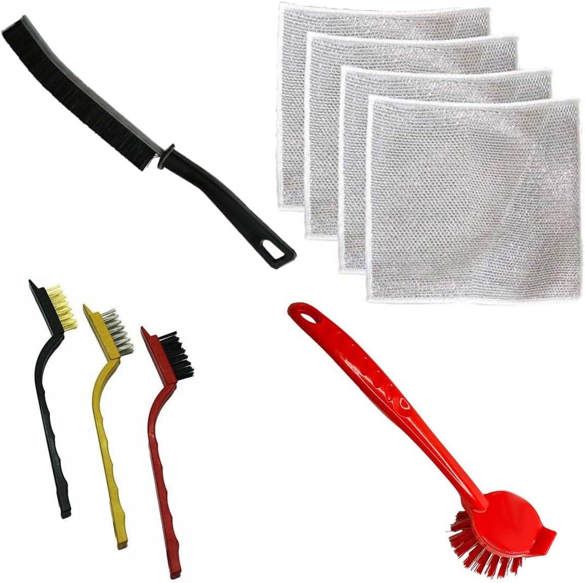 Temizlik Seti, 9 Parça: 3 Adet Fırça, 4 Adet Bez, 1 Adet Uzun Fırça, 1 Adet Bulaşık Lavabo Fırçası
