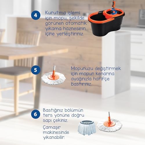 Ultramax Turbo Pedallı Temizlik Seti, Zemin Sileceği ve Güçlü Sapanlı Kova, 360 Derece Döner Başlık