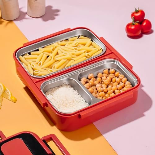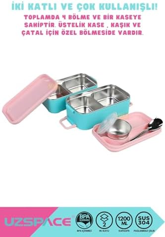 1200ml Lunchbox 2 Katlı 4 Bölmeli Mini Kaseli Çelik Sefer Tası Yemek Kutusu (Turkuaz-Pembe)