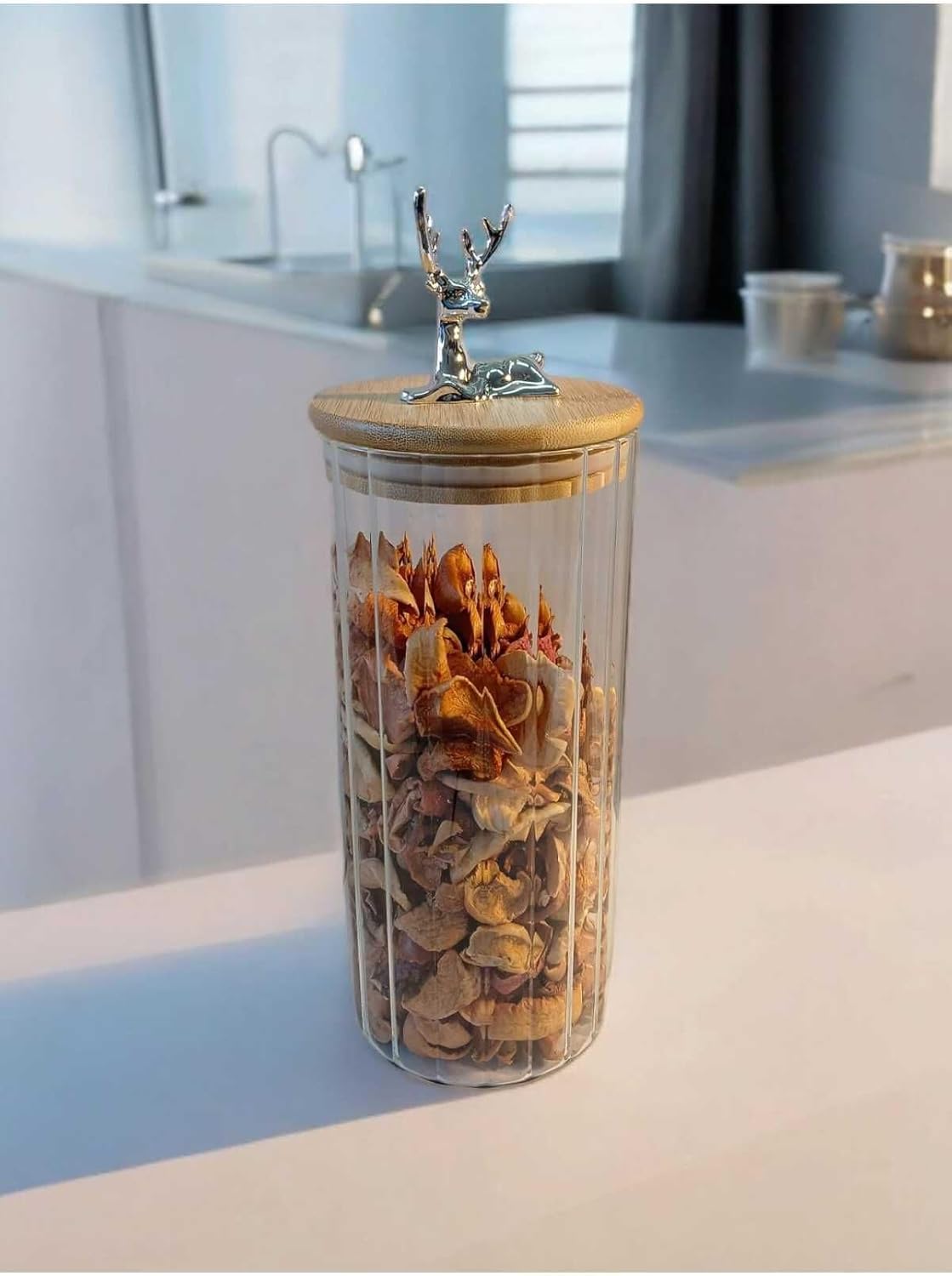 (9X20 Cm) 1 Adet Geyikli Cam Saklama Kavanozu Geyik Başı Gümüş Renk Hava Geçirmez Y-411,Şeffaf