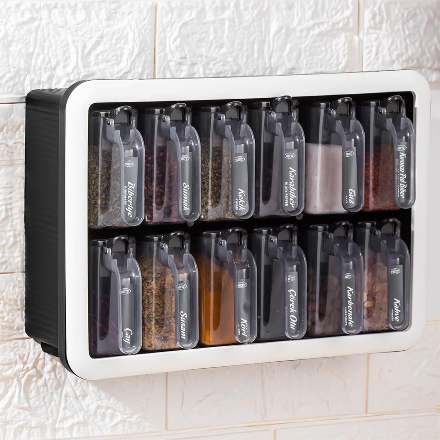 Kendinden Yapışkanlı Baharatlık Seti, 12'li, Kaşıklı Kapaklı,Etiketleri ile Gönderilir Siyah Beyaz
