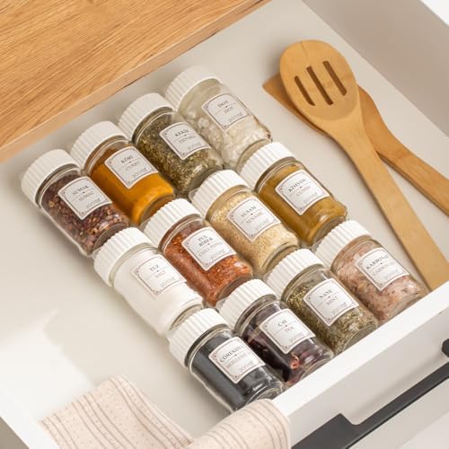 1078 Etiketli Döner Kapaklı 12'li Cam Baharatlık-Düzenleyici Organizer-Cappuccino Beyaz