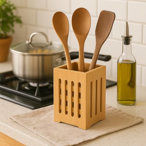 Akasya Ahşap Kaşıklık, Mutfak Düzenleyici Organizer, 10 x 12.7 cm, Kahverengi