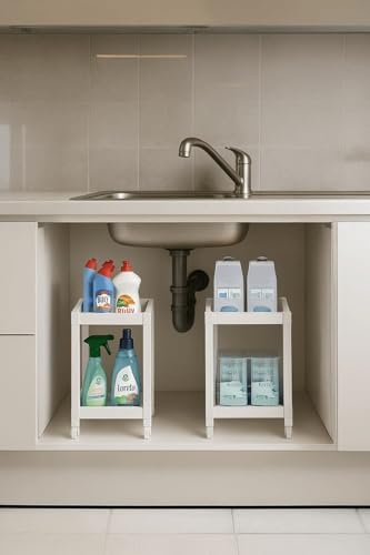 Pro 2 Katlı Beyaz Tekerlekli Çok Amaçlı Banyo & Mutfak Düzenleyici Raf – Evye Altı Raf Beyaz 40 X 35