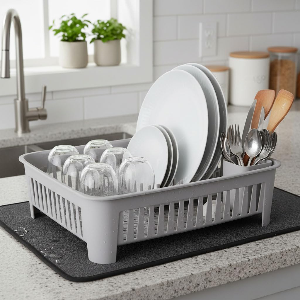Plastik Çok Amaçlı Tabak Rafı, 6 Bölmeli, Mutfak Düzenleyici (Gri)