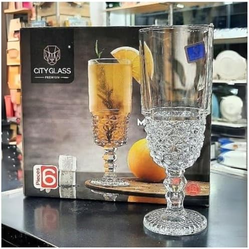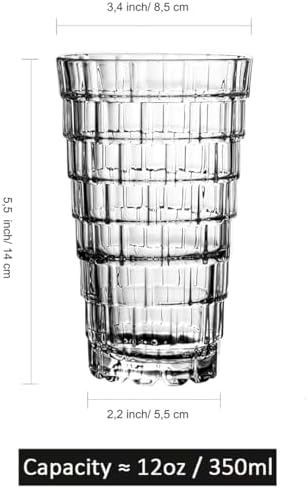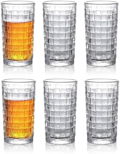 380ml 6 Adet Kokteyl Seti, Kristal Kare Desenli Cam Bardak, Soğuk İçecekler için Borosilikat Cam, Buzlu içecekler,Kokteyller için ideal Ergonomik Tasarım