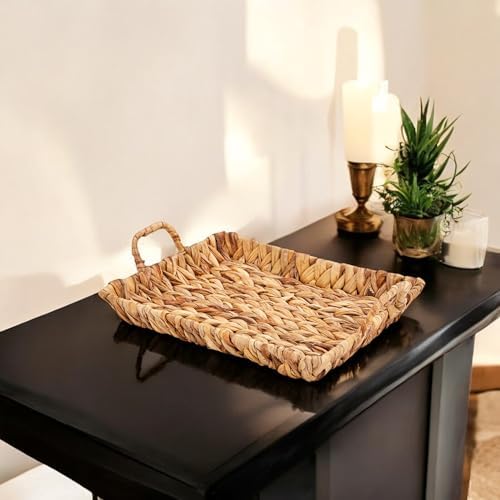 El Yapımı Doğal Hasır Kulplu Çok Amaçlı Dekoratif Oval Sepet, Hasır Kulplu Ekmek Sepeti (27x18x8 cm)