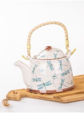 Hasır Saplı Porselen Demlik Yusufçuk Dekorlu, 900Ml Çay, Kahve, Bitki Çayı Sunum