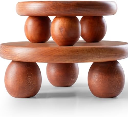 Halohope 2'li Set El Yapımı Ahşap Top Ayaklı Sunum Standı Tabağı Tahtası Kaliteli Dekoratif Sunumluk