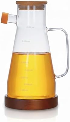 Kesten 900 ml Cam Yağdanlık | Ahşap Kapaklı ve Altlıklı | Şeffaf, Pratik Mutfak Yağ ve Sirke Şişesi