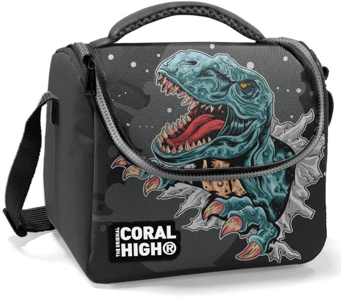 Erkek Okul Okul Beslenme Çantası – Siyah Gri Dinazor – Termal Astarlı