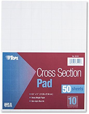 TOPS Kesit Pedleri, 8-1/2 “x 11”, Tutkal Üstü, Grafik Kuralı (10 x 10), 50 Yaprak (35101)