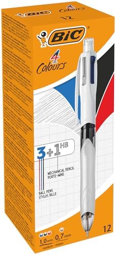 4 Colours Gümüş Gövde Tükenmez Kalem 12'li Kutu, 4 Renk (Mavi, Siyah,Yeşil ve Kırmızı), 1.0 mm. Uç