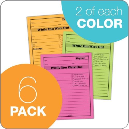 While You Were Out blokları, 10,7 x 13,2 cm, farklı neon renkler, 50 yaprak/blok (6'lı paket) (9711NEON)