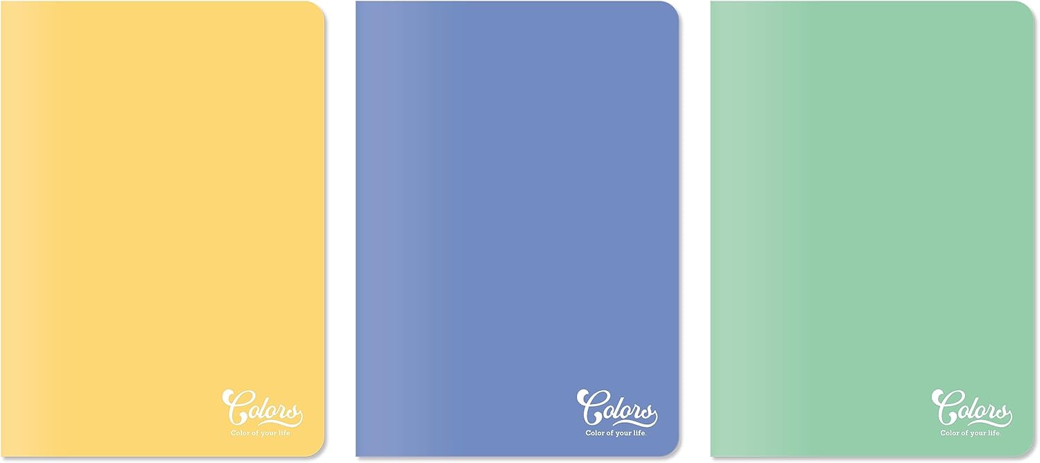 Colors A4 60 Yaprak Kareli Defter 3'lü Paket, Mor, Yeşil, Sarı