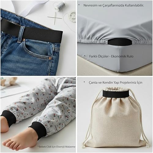 Dikiş İçin Lastik Bantlar: Kemerler, Peruk Bantları, Kendin Yap Dikiş Malzemeleri için İdeal Lastik Kordon, Tüm Dikiş Malzemeleri İçin Uygun- 1,5 cm 10 Metre
