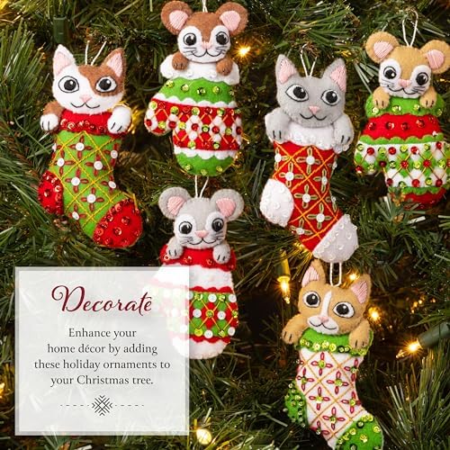Bucilla, Paws & Whiskers, Keçe Aplike 6 Parça Süs Yapma Seti, Tatil Kendin Yap Sanatları ve El Sanatları için Mükemmel, 89701E