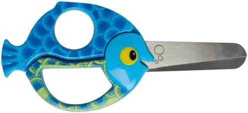 Çocuk hayvan makası balık motifli sağ ve sol elini kullananlar için, mavi, uzunluk 13 cm