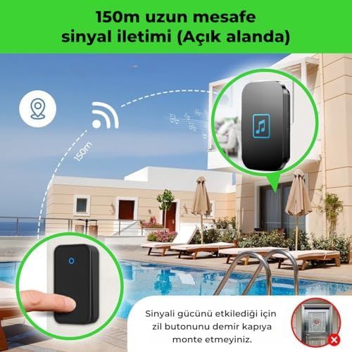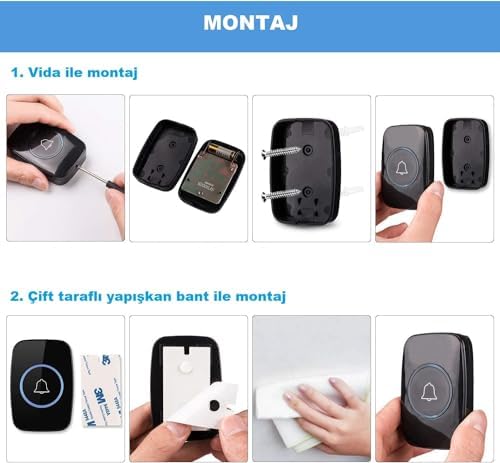 Kablosuz Kapı Zili | Pilli, Güçlü ve Şık Tasarımlı Ev & Ofis Zil Sistemi (Asorti Renk Karışık)