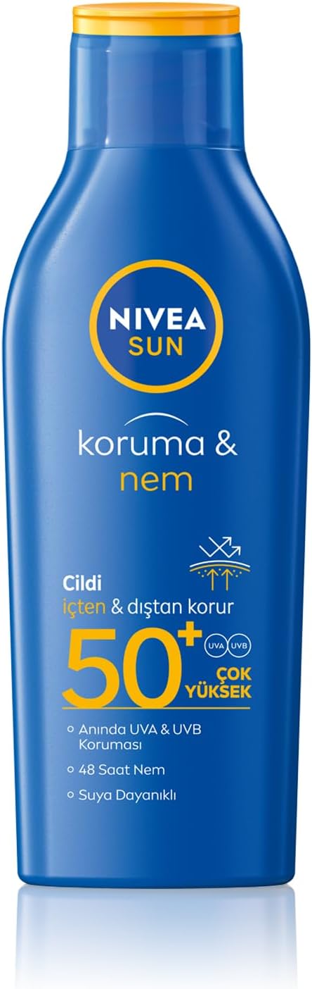 SUN SPF50 Güneş Koruyucu Losyon 200ml, 48 Saat Nemlendirici, Suya Dayanıklı, Anında Koruma